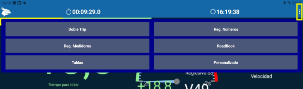 El Rabbit Rally 2.0 tiene cinco pantallas de navegación diferentes. Con ellas, puedes adaptar la manera de navegación a su gusto. Para seleccionar las pantallas basta hacer clic en los 3 puntitos en el canto superior derecho de la pantalla de Navegación y elegir una de ellas.