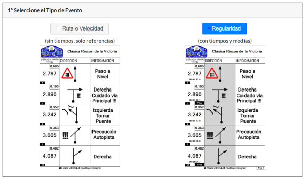 - Régularité – roadbook avec temps et vitesses