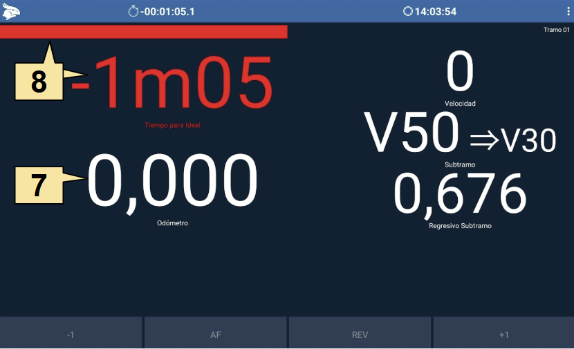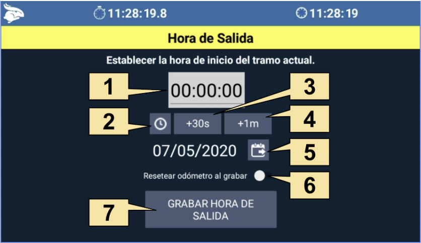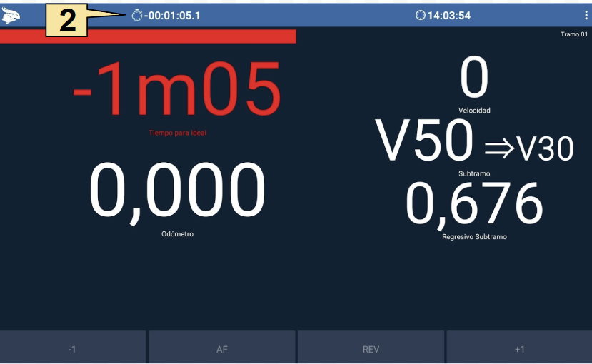 Se l'organizzazione del rally ha fornito solo la tabella delle medie, abbiamo due opzioni per configurare l'ora di partenza. O pre-configurando l'ora di partenza di ogni tratta come descritto nell'Editor di Tratte (Base), o regolandola nella schermata di navigazione.