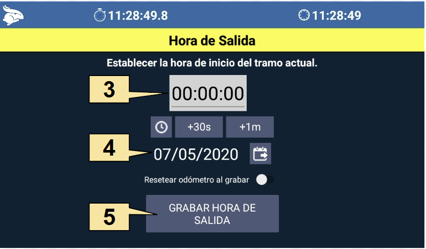 Per configurare l'ora di partenza dipendiamo dall'informazione fornita dall'organizzazione del rally, che può essere: Roadbook digitale o Tabella delle medie.